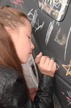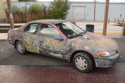 1996 Toyota Camry, chalboard paint, chalk, mesh chalk holder, paper signs